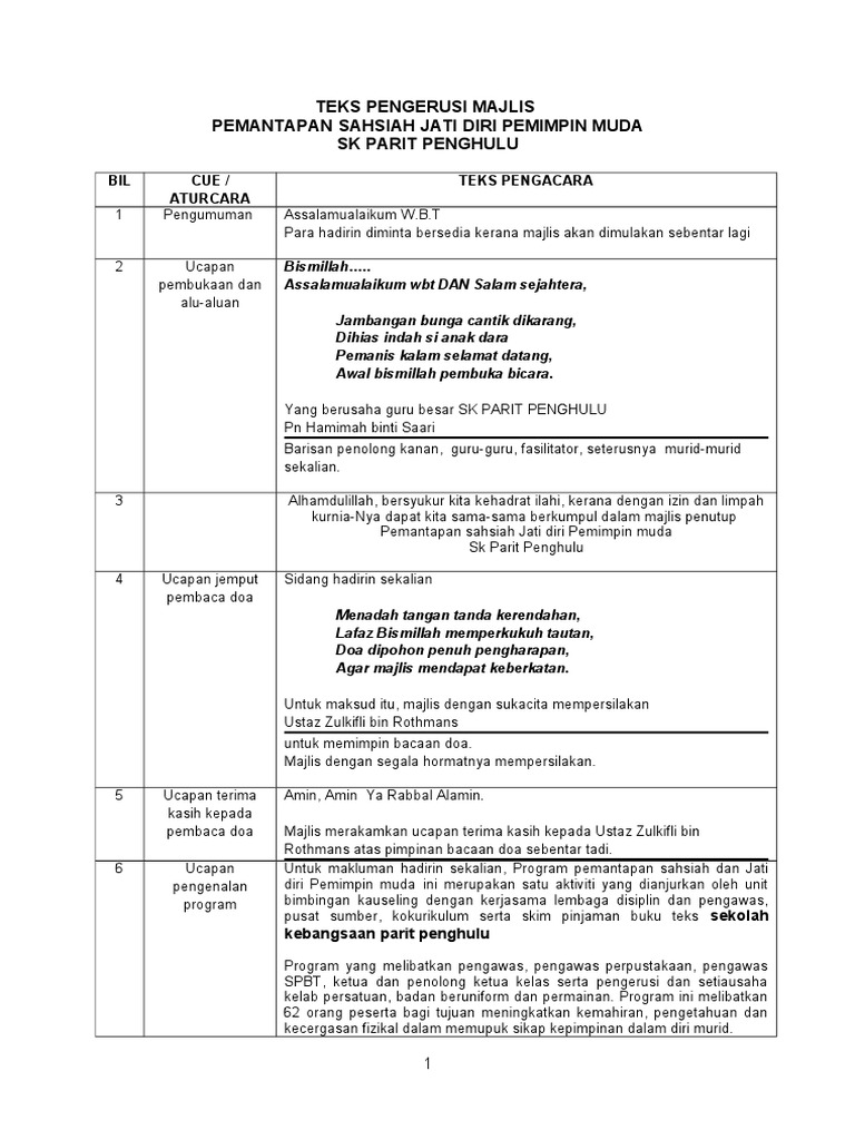 Teks Pengacara Majlis Penutupan Pdf